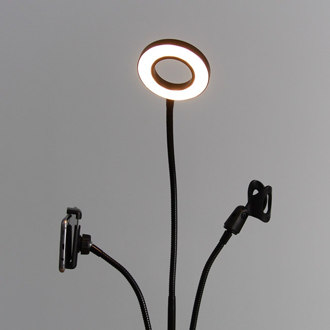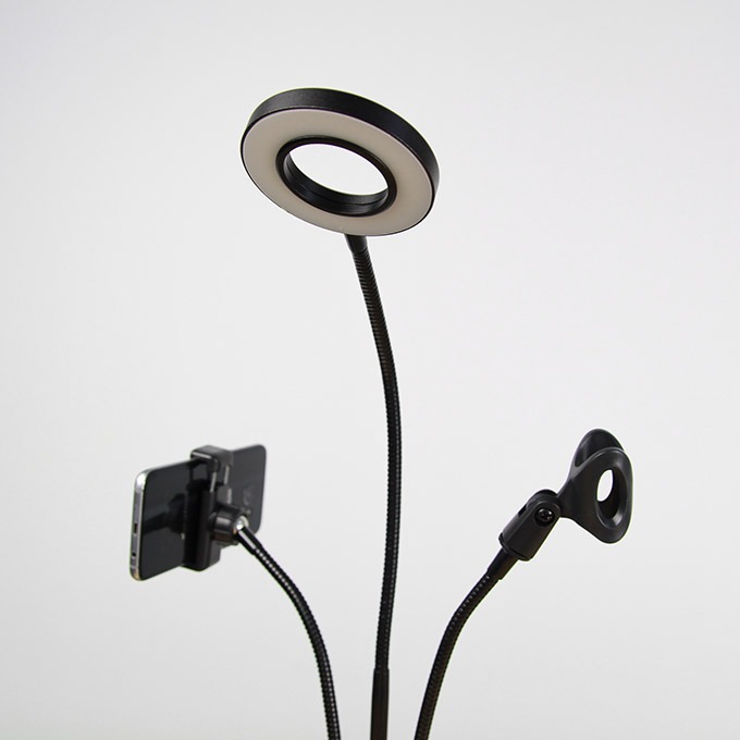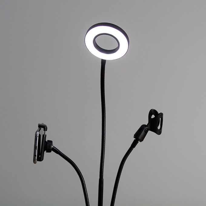 Bộ sản phẩm: gồm 1 giá đỡ micro thu âm, 1 giá đỡ điện thoại, 1 đèn LED có thể điều chỉnh độ sáng, màu sắc