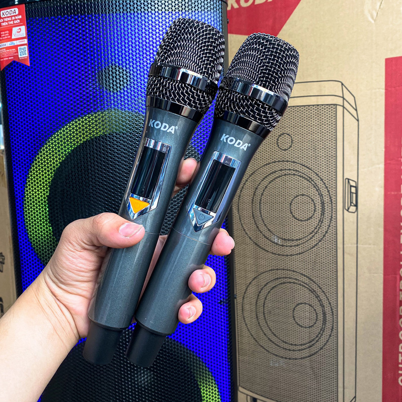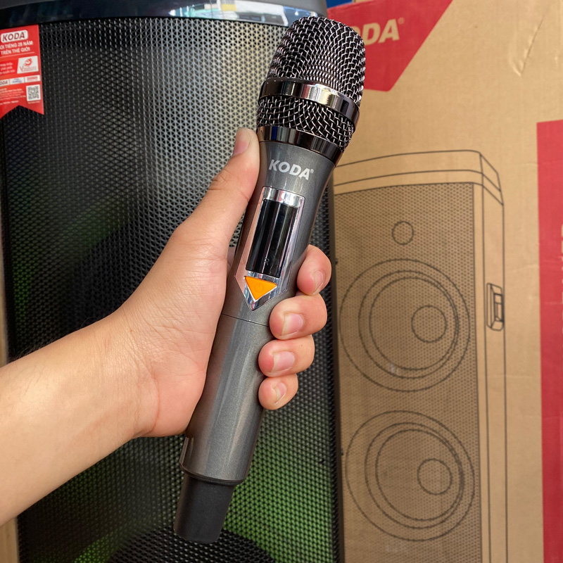 Đi kèm với loa là 2 chiếc micro không dây có thể kết nối đồng thời để có thể hiện những ca khúc song ca, tay micro được làm bằng kim loại và được sơn phủ màu phù hợp. 2 tay micro này được trang bị tần số sóng UHF cho âm thanh trong trẻo.