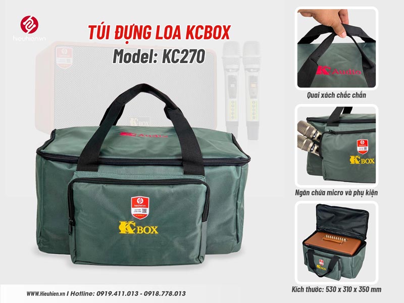 Túi Đựng Loa KCBOX KC270 – Là chiếc túi thiết kế riêng cho Loa KCBOX KC270, giúp đựng vừa vặn bảo vệ loa hiệu quả khi không dùng đến. Có trang bị quai xách và các ngăn đựng phụ kiện tiện lợi. Cho phép người dùng dễ dàng mang loa theo bất cứ đâu cực kỳ dễ dàng và an toàn.